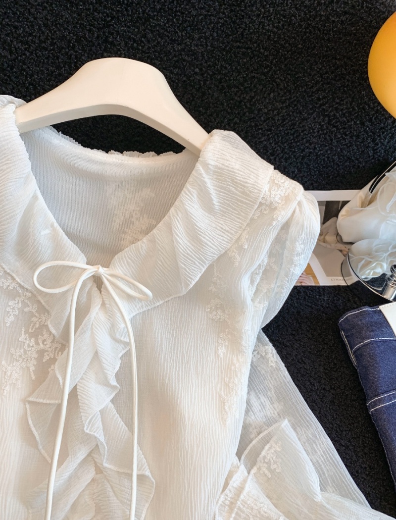 France style shirt embroidered flowers tops