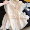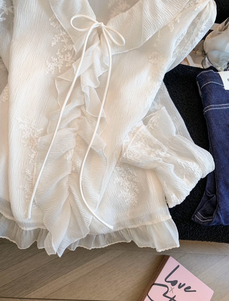 France style shirt embroidered flowers tops