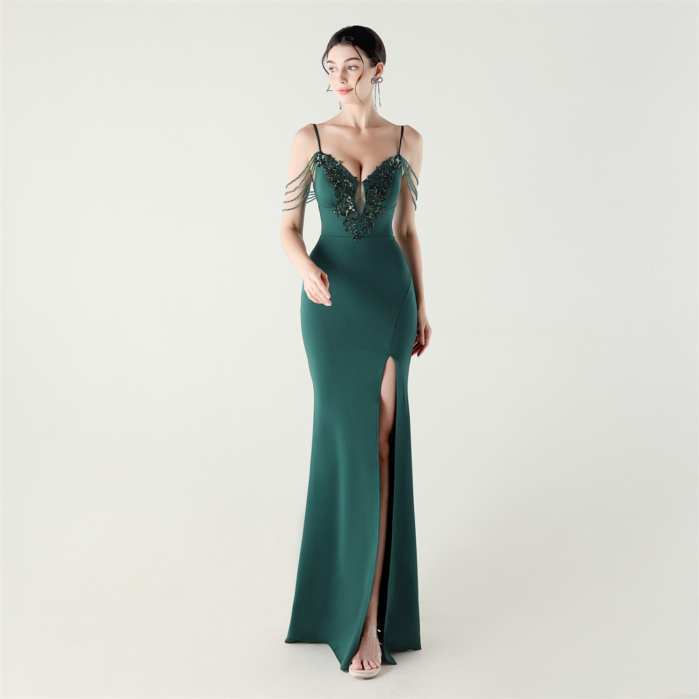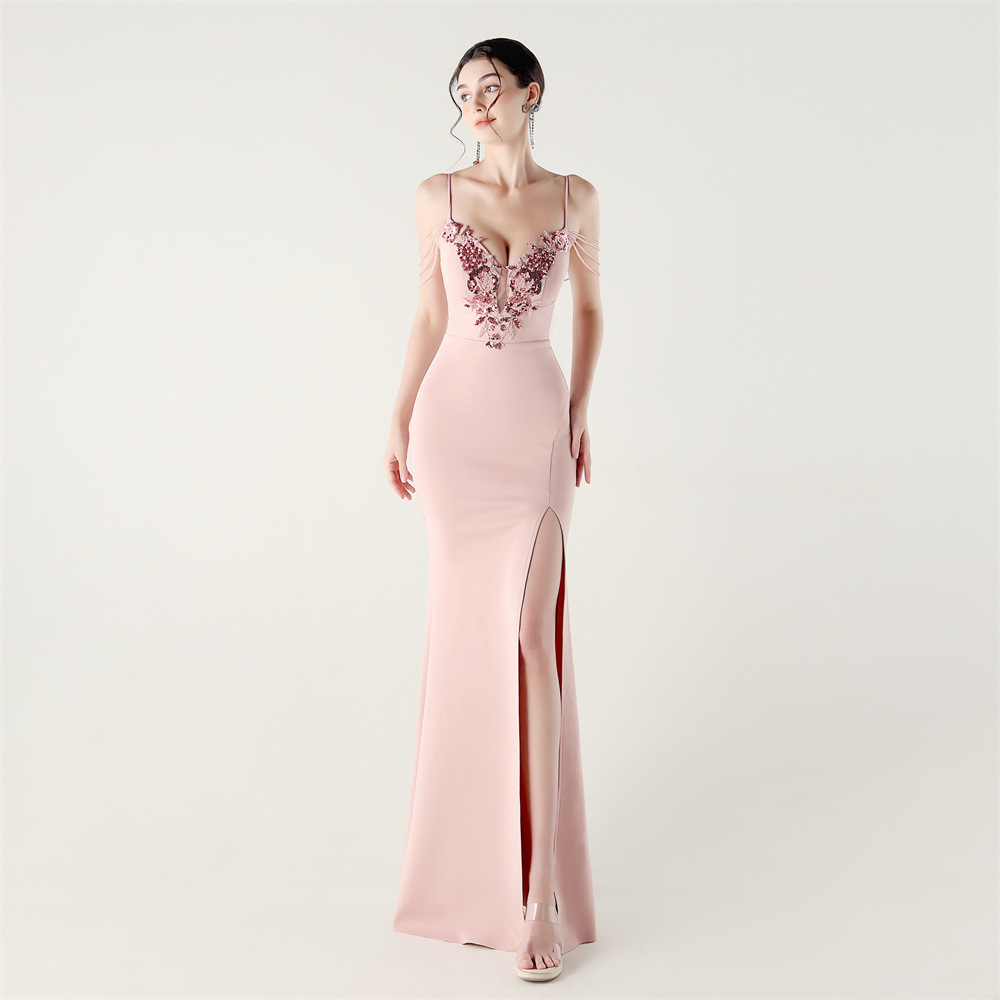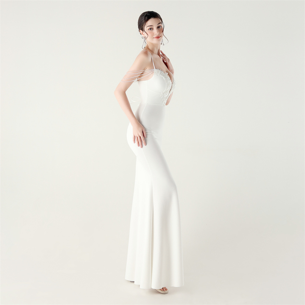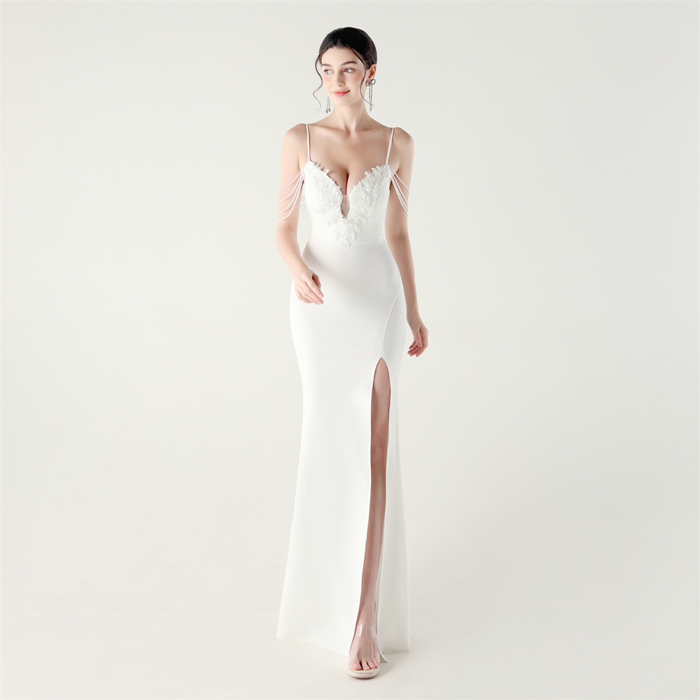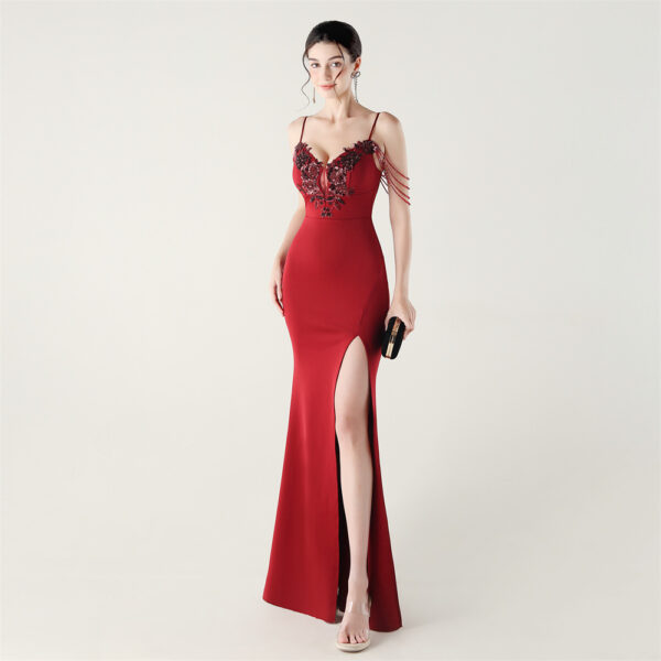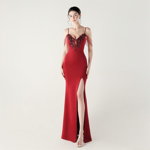 Slim set beads applique banquet bandage evening dress