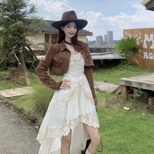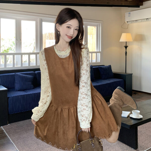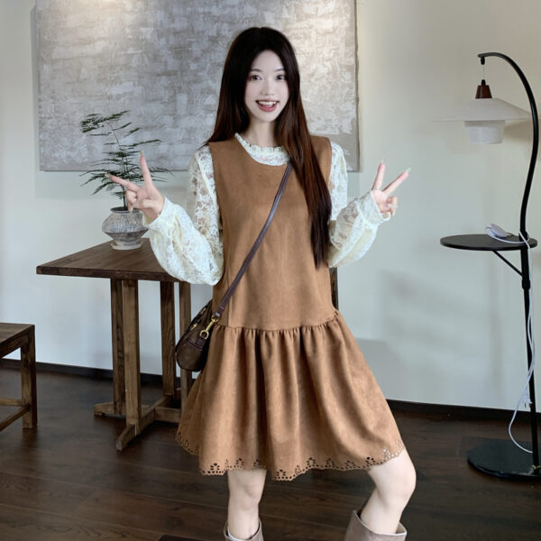Large yard bottoming sleeveless dress lace dress 2pcs set